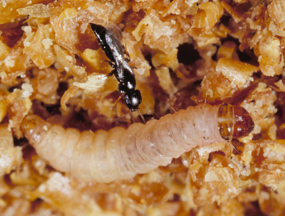 Reducing orchard sanitation to provide Goniozus with overwintering hosts is not a good strategy, Daane said, as Goniozus overwinters primarily as adults. Larvae inside the mummy nuts on the ground die from cold temperatures.