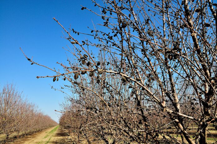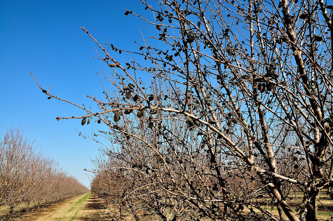 Crop consultant Wes Asai noted his orchard sanitation research in a 2020 West Coast Nut article. Trials done in 2018 and 2019 in young and mature bearing Nonpareil trees showed shaking on February 6 removed an average of 6,784 buds per tree and on February 6 removed an average of 9,626 buds per tree. Mature Nonpareil trees have an average of 38,000 blossoms. Asai said there was no negative impact on yield from that level of bud drop.