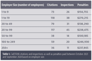 Between October 2023 and September 2024, Cal/OSHA issued hundreds of citations to California crop production operations under NAICS Code 111. The statistics tell an important story (Table 1).