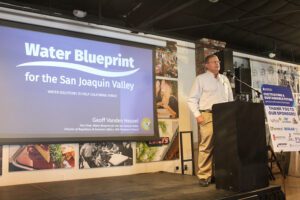 Speaker Geoff Vanden Heuvel with San Joaquin Valley Water Blueprint outlined goals of this coalition made up of community leaders, businesses, water agencies and local governments.