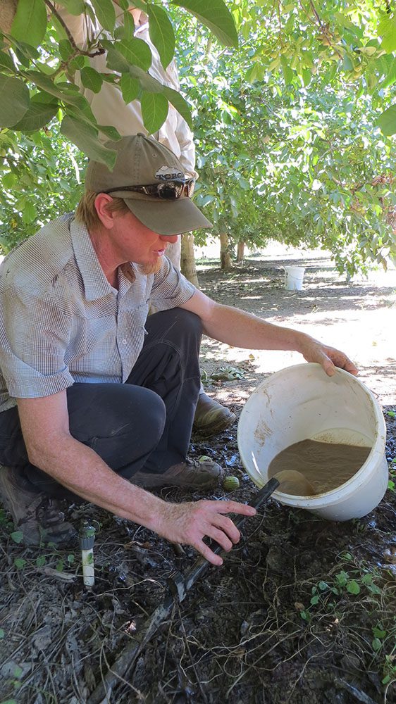 Hilbe said growers in northwest Kern County understand that preventive maintenance is critical to keeping systems operating efficiently. Most of the tree nut growers have micro sprinkler systems. Plugging and purging of irrigation lines are the most common issues they deal with. Outlet plugging in drip tape is commonly caused by soil ingestion. When field plugging is suspected, the filtration site is the place to start. Good flushing practices need velocity, duration and timing. Plugging by organic material inside the emission devices may require chemical treatment. Irrigation systems will need to be flushed after the treatment to remove large-scale debris.