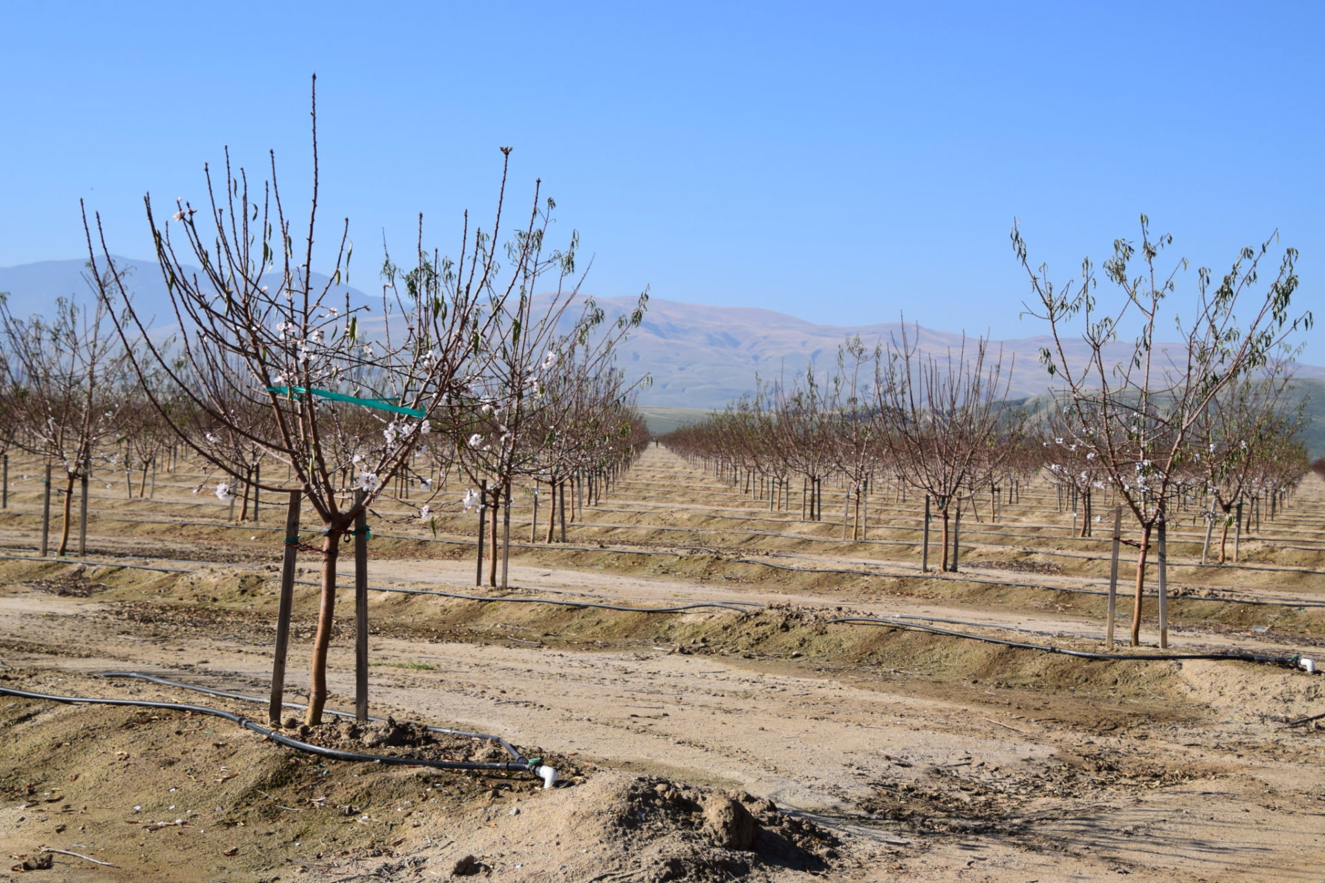 Irrigation management in young orchards can be challenging due to the expanding tree canopies and root systems from planting up to production. Young orchards, while not yet yielding much crop, are using water and nutrients to grow. Expanding leaf area means more leaves with stomata to transpire water and take in carbon. As roots grow, they may also access additional soil moisture other than from irrigation.